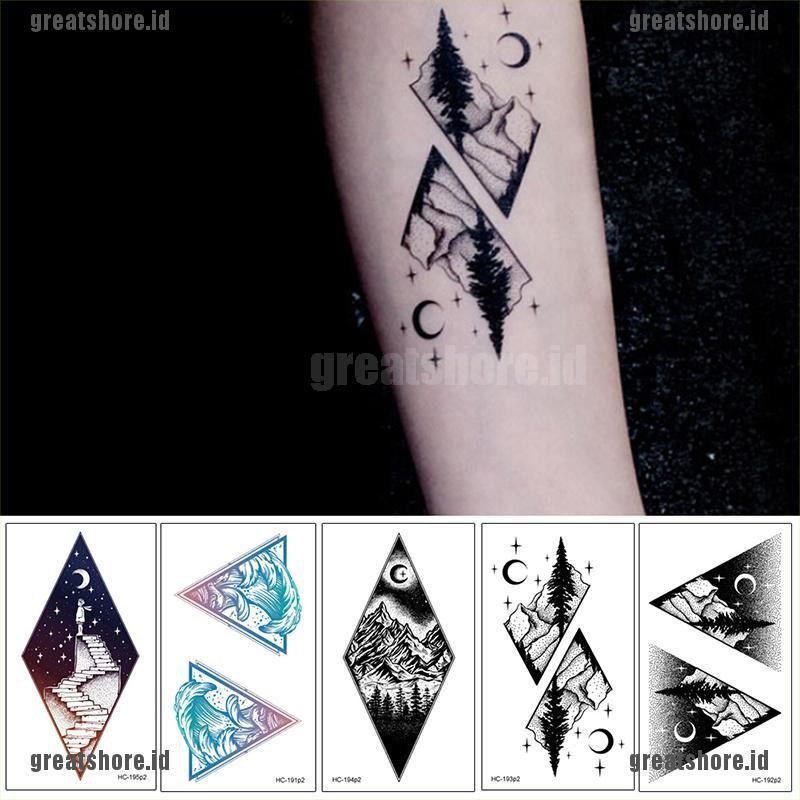 Stiker Tato Temporary Desain Bulan Gunung Planet Shopee Indonesia