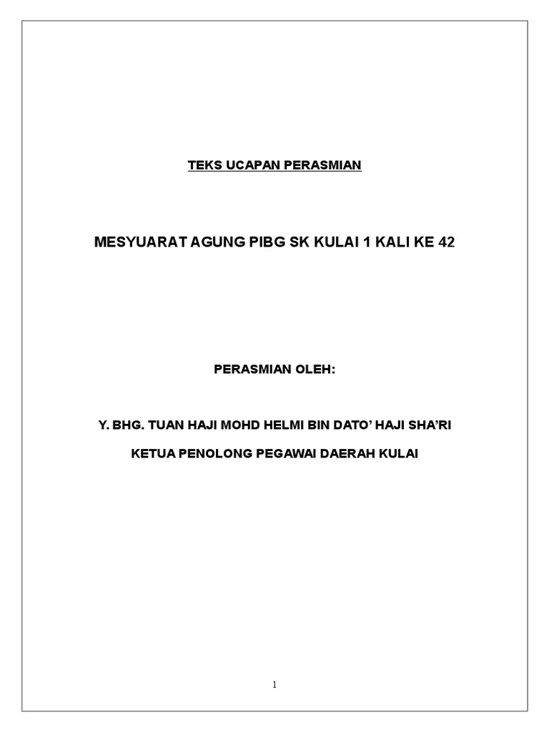 Teks Ucapan Perasmi Mesyuarat Agung Pibg Docx