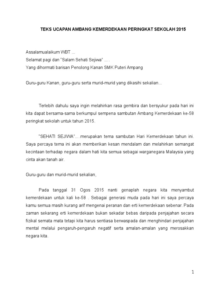 Teks Ucapan Ambang Kemerdekaan Peringkat Sekolah 2015 Pengetua