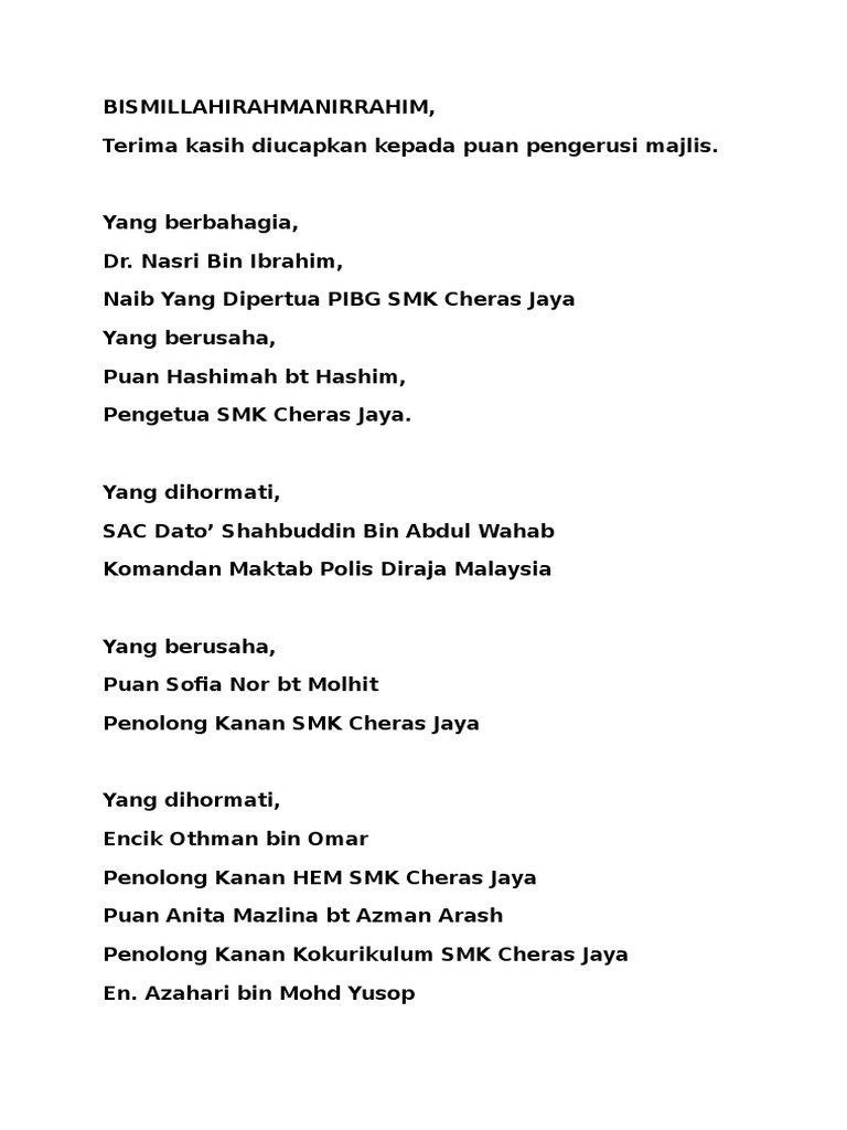 Doc Teks Ucapan Wakil Pelajar Nurul Izzah Hazirah Ii Academia Edu
