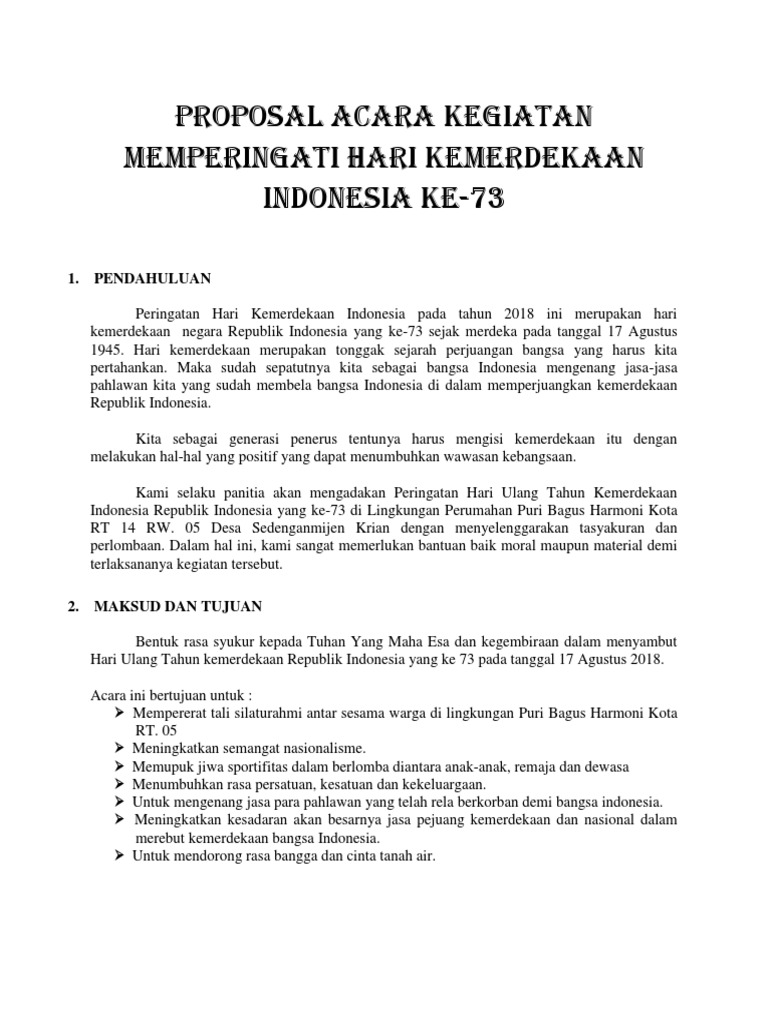 Doc Proposal Acara Kegiatan Memperingati Hari Kemerdekaan Indonesia Ke 73 Julham Dani Academia Edu