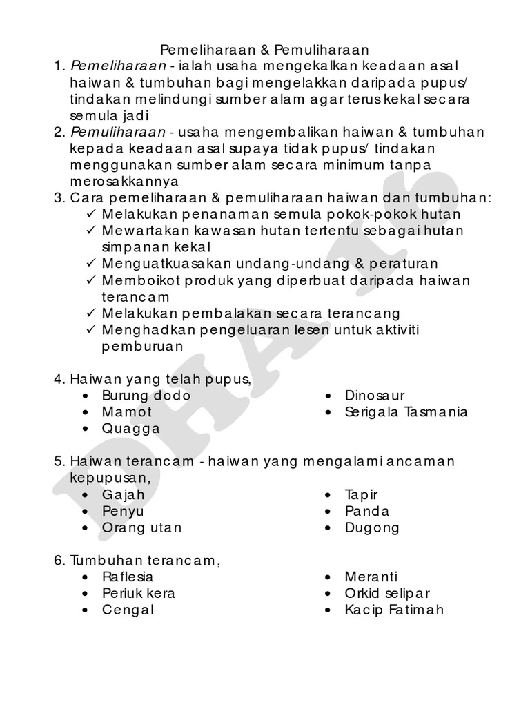 Sains Tahun 6 Bab 5 Pemeliharaan Pemuliharaan