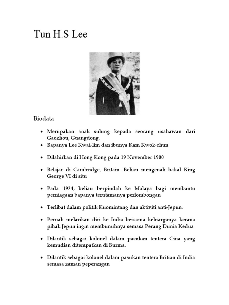 Tun Sir Henry Lee Hau Shik Ahli Tokoh Perniagaan Dan Tokoh Politik