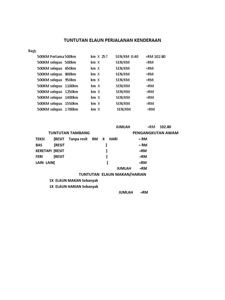 Kadar Tuntutan Elaun Perjalanan Pdf Document