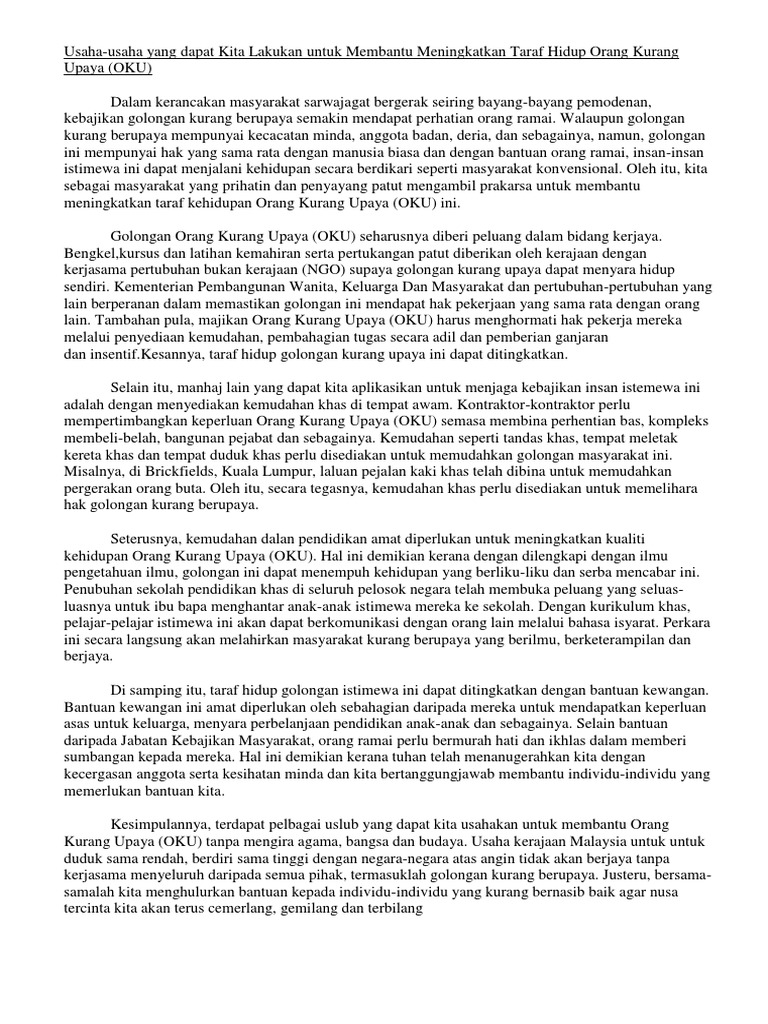 Contoh Karangan Pmr Langkah Langkah Membantu Orang Kurang Upaya Oku
