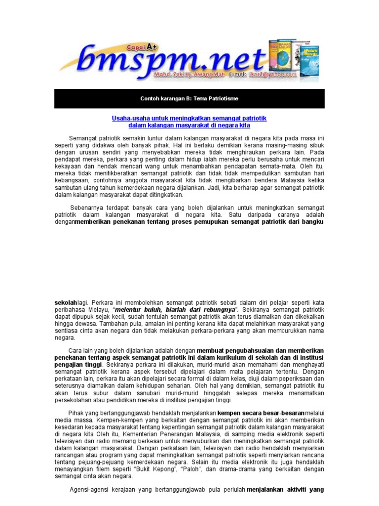 Karangan 1 Usaha Memupuk Semangat Patriotisme