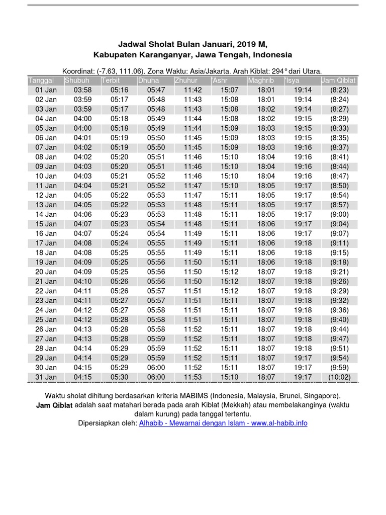 Jadwal Waktu Sholat 2019 Kabupaten Karanganyar Jawa Tengah Indonesia 1200180s0607